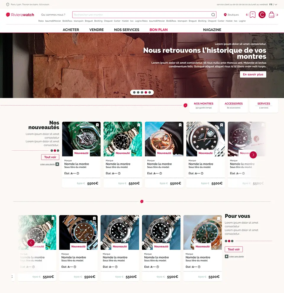 Chez empathique, nous sommes fiers de présenter notre récente collaboration avec Rivierawatch, une société de vente de montres de luxe en ligne et en magasin. Notre mission était claire : redéfinir l'expérience utilisateur (UX) et l'interface utilisateur (UI) de leur site web pour mieux refléter la qualité de leurs produits et services tout en garantissant une expérience client fluide et intuitive.